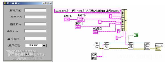 在添加用户与添加设备子VI 中,需要用到数据库。这里应用Microsoft Access 数据库,它是一种关系型数据库,按关系数据模型组织数据库。