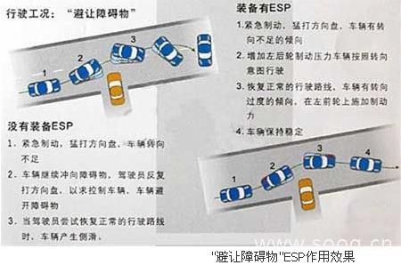 在汽车行驶过程中,转角传感器感知驾驶员转弯方向和角度,车速传感器感知车速、油门开度和转速力矩,刹车传感器感知刹车力,而摆角传感器则感知车子的倾斜度和侧倾速度,ECU了解了这些信息之后,通过计算机判断汽车要正常安全行驶和驾驶员操纵汽车意图差距,然后由ECU发出指令,调整发动机的转向和车轮上的刹车力,从而修正汽车的过度转向或转向不足,以避免汽车打滑、转向过度、转向不足和抱死,保证汽车的行驶安全。