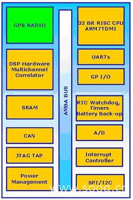 车载GPS的硬件系统主要由天线、RF、基带、处理器,以及内存、总线接口等模块构成。在系统构架上,这些模块可以采用集成或独立式。前者将多个单元整合为一颗系统单芯片(SoC)、单封装(SiP)或模块,以降低设计的难度及成本;后者采用各自独立的架构来实现设计上的高灵活性。当系统工程师在进行设计时,必须在性能、成本与灵活性三方面间进行权衡。