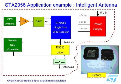 图二 高性价比的GPS接收器架构(以STA2056为例)