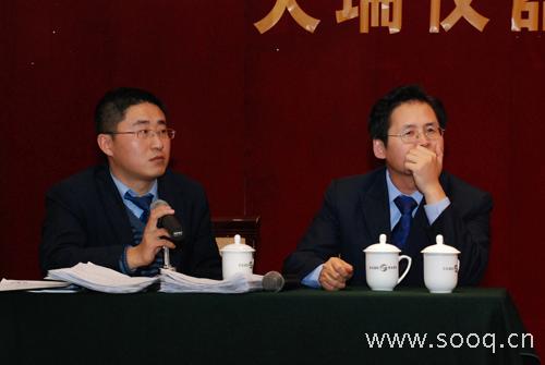 经验交流完后,销售总监(南)严卫南和销售总监(北)陈辉分别作了销售一部和二部的年度工作报告。刘博士提出2009年度销售计划和目标分解,并提请大会审核“基于2009年度销售计划的全员绩效考核办法”。