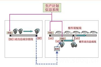 对于汽车制造企业要实现发动机的排序生产,必须及时了解总装车间的汽车生产信息并知道每种汽车所对应的发动机品种需求。在未采取排序生产的组织情况下,发动机的供货按总装车间2日的总体生产计划进行,主要采取同一品种批量装配的方式进行。现在,排序生产势必要打破这种局面,适时地根据总装的需求安排相应品种机型的装配。这就对总装需求的及时性提出了更高的要求,此外,对于总装生产的任何变化都需要信息的及时传递。显然,传统的生产任务单位的形式很难适应这种生产的要求。