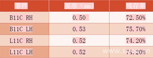 根据外观检查标准:外板件板厚残存率低于70%,属于拉薄V2;而75%以下属于V3u项,随着生产的继续,极有可能发生拉薄、拉裂现象,所以需要进行改善。