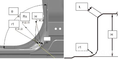根据上述对模具的调查、网格分析及日产的CAE成形分析,技术人员提出了下一步的改进方案:准备将门框处的R角放大。首先,我们考虑了放大R角后对总装工程的影响,经过总装相关人员现场调查,发现放大此处R角到30mm左右,后续工程装配无影响。