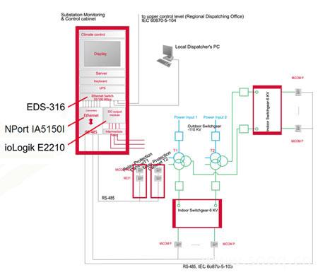 监测和管理系统部署在变电站层,它对继电保护终端设备数据进行收集并完成与控制中心之间的交换。该系统还负责转换和处理数字以及模拟信号,其中包含了中央警报系统和火灾警报器,断路器和接地刀片,测量模拟线路上的电流,电压和转换数据的能力。 在6千伏变压器保护室内安装了64个继电保护终端并将他们连接到 RS-485 线路。 RS–485 再通过 Moxa 的 NPort IA5150I 转换为以太网,以便于本地整合、监测和管理。