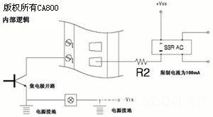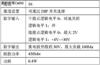 R-9050有16路数字输入/输出。通过设置它的DIP开关每个通道可以被独立地配置为一个输入或输出通道。数字输出是一组可被R-9x21控制的集电极开路晶体管开关。这组开关也可被用于控制固态继电器。