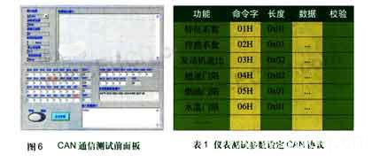 所有的模块测试之前首先需要对该模块的参数进行初始化,如进行特征系数、传感系数、发动机速比、超速门限、燃油门限、水温门限以及测量范围等参数的设置。数据通信采用CAN协议,鉴于成本方面考虑,我们在LabVIEW上对串口进行操作,然后通过数据转换板卡输出cAN信号,cAN信号直接与被测仪表进行数据通信,因此,需要定义一个简单的CAN通信协议。测试系统作为CAN网络上的一个节点,节点ID号可以根据需求自行设定,数据区域由命令字、数据长度、数据、校验位组成。图6和表1是仪表参数设定CAN通信简单协议。