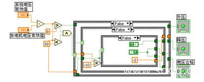 应用LABVIEW[5-6]软件来模拟发电机并列的过程,编制程序来完成对发电机并列前三个条件的判断,同时模拟显示出发电机并列的过程,使其能方便、直观的模拟演示。