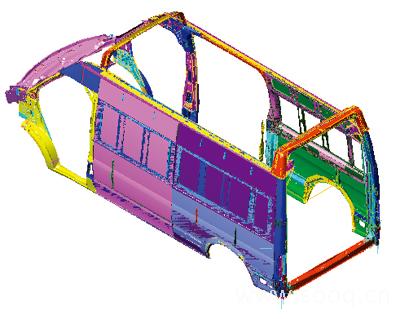 本体夹具作为焊装最重要的工位,其最关键的控制点在于门洞尺寸的控制和前风窗洞尺寸以及顶盖安装的控制。在本体夹具工位完成后,全顺车身(如图4)形成了一个刚性很好的车身壳体,由地板、侧围以及横梁三大部分组成,形成了后门洞、前门洞、侧门洞、前风窗洞以及顶盖安装空间。门洞的装配尺寸是整车外观间隙面差的基础,保证这些门洞、窗洞以及顶盖空间的装配尺寸的关键在于: