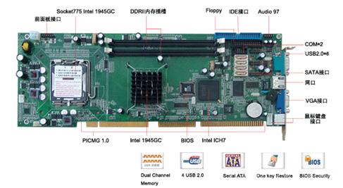 板载AMD LX800-500MHz无风扇低功耗CPU, 板贴256MB DDR1内存,支持VAG / LCD显示,1个10/100Mbps自适应以太网卡,Audio,1个VGA接口,RS-232/422/485接口,4个USB2.0 接口,4COM,CF卡插槽 | |