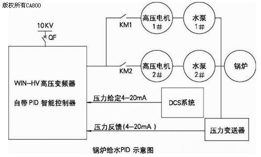 - 从母管上取压力变送器的4~20mA电流信号作为反馈,给定频率根据用户从DCS系统直接给定;