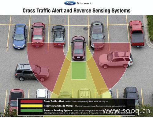 BLIS盲点警示系统监测后侧面区域内的车辆,如果驾驶员试图并线,系统将通过声音信号发出警告。福特Cross Traffic Alert system混合交通预警系统将BLIS系统、倒车雷达和后视镜综合在一起,驾驶员可轻松监视两侧和车后20米范围内的障碍物、行人或者车辆,在泊车时提供全面保护。