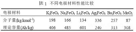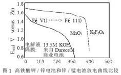 高铁作为电池的正极材料时, 该电极反应为三电子反应, 电池的电势以及能量都比传统的锌锰电池高。而且这种材料价格低廉对环境无污染, 因此受到电化学界的广泛注意。