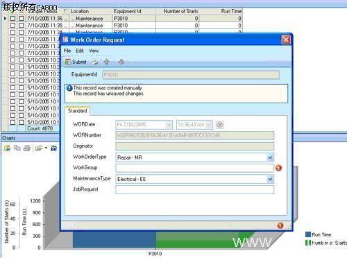 Ampla依据停工或其他事件开始维护工作指令,操作者无需在分离的CMMS系统中进行记录,或者使用书面文档进行记录。