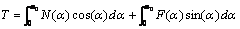 在压辊与物料接触的任意点A,其受力如图4所示,因挤压物料而收到物料施加给压辊的反作用力N,N大小随 变化而变化,但总是沿半径指向圆心方向;压辊与物料之间还可能存在摩擦力F,F必定沿切线方向,但指向有待讨论。