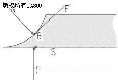 明确了压辊的受力情况,就可以分析物料受力,物料受力情况如图5所示,在磨辊挤压物料的任意一点B,物料受压辊对其施加的力 与 ,分别为 和 的反作用力。在与平模接触的平面,物料受到水平方向上的摩擦力S和铅直方向上的支撑力T。则物料受力的平衡方程为: