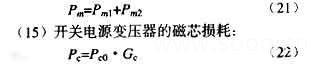 其中,系数Ke取决于磁芯材料、形状、片厚;f是工作频率;Bm是磁感应强度最大值;V是磁芯体积。