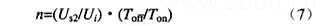 式中,Us2为次级绕组电压,其值为Us2=U0+Ur+UL。其中,Ui为输入电压,U0为输出直流电压,Ur为续流二极管压降(通常为1V),UL为变压器漏感压降(通常为0.075 U0)。应当注意,若次级绕组为多绕组,则应分别求各自的变比kn。