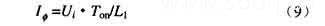 式中, 为磁化电流,L1为初级电感,Ui为输入电压,Ton为导通时间。