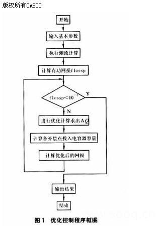 优化控制程序可见图1。框图中潮流及优化计算程序皆可利用现成的实用化程序。在用线性化模型逼近非线性化模型时,迭代计算性能对步长及初值很敏感,所以应注意选取,一般可考虑以单组电容器容量和就地无功平衡点为迭代。??