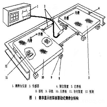 摘要: 本系统主要应用于汽车车轮侧滑量的检测。为保证汽车转向车轮无横向滑移的直线滚动,要求车轮外倾角和车轮前束有适当配合,当车轮前束值与车轮外倾角匹配不当时,车轮就可能在直线行驶过程中不作纯滚动,产生侧向滑移现象。当这种滑移现象过于严重时,将破坏车轮的附着条件,丧失定向行驶能力,引发交通事故并导致轮胎的异常磨损。侧向滑移量的大小与方向可用汽车车轮侧滑检验台来检测。 侧滑台结构图: