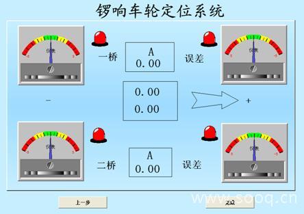 图中两个仪表分别显示当前的侧滑量,并根据不同的数值范围显示不同的刻度底色。当一桥误差超过设定值数报警提示灯会变色。 二.双桥测试