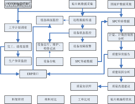 2) 研究开发面向精益生产管理模式要求的,以生产过程动态质量控制为目标的MES系统。通过建立SMT流水线生产过程的管理控制模型。实现关键工序与设备的生产和质量数据的实时采集、监控与调度。实现从产品生产任务分派、设备管理及现场动态调度的集成信息化管理。