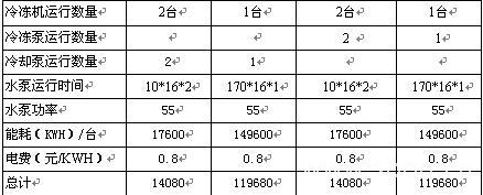 原水泵在制冷的180天时间里的电耗和运行费用如下: