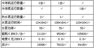 原水泵在制热的120天时间里的电耗和运行费用如下: