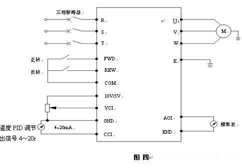 2)F0.00 =5,CCI模拟量4~20mA输入给定频率,调节电机转速。