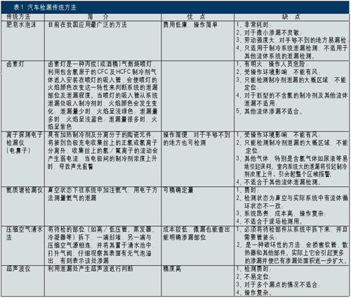 与表1中汽车的传统检漏方法相比,荧光检漏技术的优点如下: