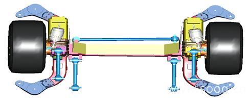 采用这种驱动方式的车辆可以采用中桥驱动(大沉降量门式桥)轻松实现超低地板的BRT车辆,相对后驱车辆,可以用简单便宜的平面铰接盘替换价格昂贵的电控液压铰接盘,降低成本。整车采用全承载桁架式设计,可以大大减轻整车重量。