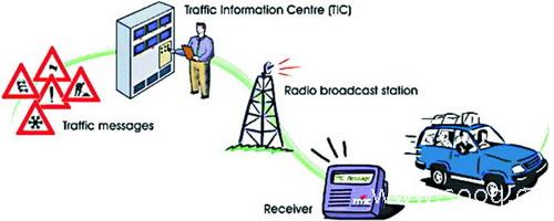 近来有欧洲厂商推出TMC(Traffic Message Channel)数字路况广播系统(RNS,Radio Navigation System),该系统产品主要通过3G、GPRS 或802.11通讯传输技术,使用者可自行设定更新的频率与FM Radio Data System(RDS)连结,透过TMC-enabled的导航系统提供驾驶动态路经指引,以及提供驾驶行车路径上如遇交通事故时另一最佳替代路径等信息,由于目前该服务是透过该系统高效能的数据压缩技术,实际传输的数据量极小,即使长时间使用,也不致产生太多的通讯费用,目前已在欧洲包括德国、法国、英国、匈牙利、西班牙、奥地利与荷兰等国家提供此服务,未来将增加至20个国家以上,另外目前除了广播传播网络,已有厂商推出同时将数字广播(DAB)网络、行动网络及GSM/GPRS行动网络整合至TMC信息传输方式,未来此款费用低廉的单向车用GPS在欧洲市场可望崭露头角,如图7所示。
