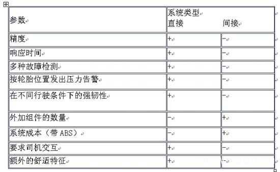 表1:直接与间接TPMS的比较