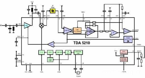 图3:英飞凌的TDA5210超高频(UHF)接收器的框图