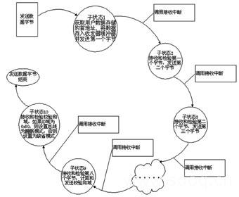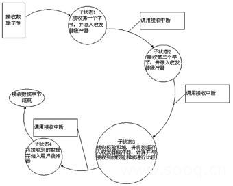 其中,子状态4接收中断中调用功能函数UCB_Rxd,该函数将接收到的数据存储入用户缓冲器。