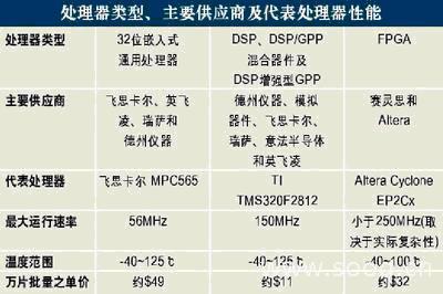 32位嵌入式通用处理器(GPP)一般用于中等性能要求的汽车信号处理控制系统。这一档次的处理器一般采用RISC结构,所用指令简单、普通且几乎无并行指令。GPP在强调决策和控制流变化的算法处理上特别有效,但许多情况下其信号处理性能也不错。此外,GPP也是很好的编译对象。与一些难于编译的特殊DSP结构相比,GPP编译代码是相当有效的。流行的32位GPP结构(比如MIPS、ARM和PowerPC)已广泛应用于汽车和非汽车应用系统。