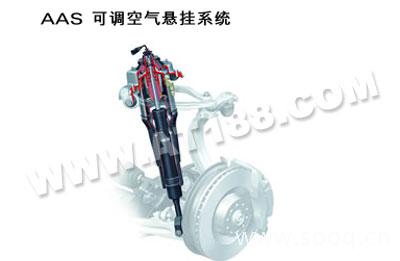 AAS可调空气悬挂系统不仅可以改变悬挂的软硬度还可以改变阻尼的大小。自动高度调整装置可确保在任一悬挂模式时,不论车的承载多少,车身都与路面保持一定距离。只有当车速高于每小时120公里时,底盘高度才会自动下降。车身重心的下降不仅增加了抓地力,同时还减低了风阻,同时降低了油耗。