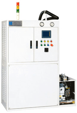 汽车制冷剂真空加注机一般可分为固定式和随行式二种。由于汽车装配线上每个工位的跨度范围比较大,每辆车在制冷剂加注过程中通常都要移动3~8m。随行式加注机在加注过程中可随汽车移动,当加注完成时自动返回起点的位置。而固定式的加注机则是让加注接头和加注管路随着汽车移动,加注机本身固定在一个位置不动。随行式加注机一般适应比较快的生产节拍,但价格比较昂贵。固定式加注机只能用于较慢的生产节拍,但价格相对便宜。