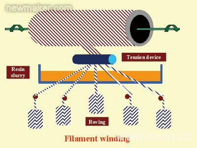纤维缠绕成型工艺的优点是:能够按产品的受力状况设计缠绕规律,以充分发挥纤维的强度;比强度高。一般来讲,纤维缠绕压力容器与同体积、同压力的钢质容器相比,重量可减轻40%~60%;可靠性高。纤维缠绕制品易实现机械化和自动化生产,工艺条件确定后,缠出来的产品质量稳定、精确;生产效率高。采用机械化或自动化生产,只需少数操作工人,缠绕速度快(240m/min);成本低。在同一产品上,可合理配选若干种材料(包括树脂、纤维和内衬),使其再复合以达到最佳的技术经济效果。现在用纤维缠绕成型工艺生产的CNG/LPG高压气瓶、传动轴和板状弹簧等已广泛应用于大客车、轿车和卡车上。纤维缠绕成型工艺的缺点是:缠绕成型适应性小,不能缠任意结构形式的制品,特别是具有凹形表面的制品。这是因为缠绕时,纤维不能紧贴在芯模表面,而是处于架空状态;缠绕成型需要有缠绕机、芯模、固化加热炉、脱模机及熟练的技术工人,不仅投资大,而且技术要求高,因此只有大批量生产时才能获得较大的经济技术效益。图8所示为采用纤维缠绕成型工艺生产的CNG乘用车用高压气瓶。