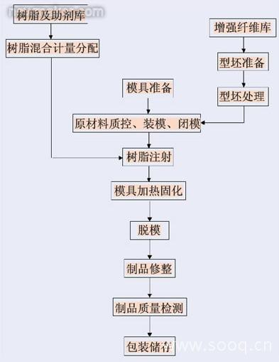 当然,RTM工艺也存在一些不足,如:双面模具的加工费用较高;预成型坯加工生产设备的投资大;对原材料(树脂和玻纤材料)和模具质量的要求高,以及对模具中的设置与工艺要求严格等。目前,对RTM成型工艺的研究和推广不断取得新的进展,主要研究方向集中在:微机控制注射机组、增强材料预成型技术、低成本模具、快速树脂固化体系及工艺稳定性和适应性等方面,涌现出了一系列改良的RTM成型工艺,如 Lite-RTM、VARTM、VIP和TERTM等。