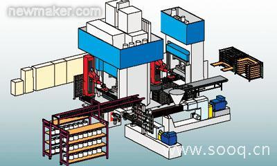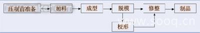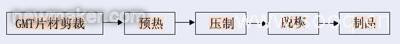 与SMC相似,GMT也是采用金属对模的模压成型工艺,所不同的是SMC的固化成型是化学反应,而GMT的冷却成型是物理变化,成型所要求的工艺参数和对压机、模具的技术要求是不相同的。GMT成型工艺的特点是:片材必须先预热(加热至220~230℃),成型压力高(10~25Mpa),成型温度低(35~50℃),成型周期短(30~60s)。GMT模压成型工艺流程如图14所示。