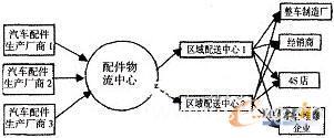 随着我国物流业的不断发展,物流企业的服务能力不断提升,在原有的配件物流市场供应体系框架下,建立统一的专业化物流配送网络,并借助先进的信息技术手段进行资源的有机整合,实现信息的共享应是一个基本策略。图1所示为零配件物流运营基本模式。配件物流中心是一个综合协调中心,它整合多个配件生产厂家的产品资源,通过区域配送中心向用户(即整车生产厂、4s店、经销商及综合维修企业)进行配送业务,这样形成一个以物流中心为核心的供应链,供应链上的各节点企业以信息共享为基础,建立相互协调机制和战略联盟伙伴关系,在满足高效客户反映(简称ECR)的前提下,降低物流成本,从而达到供应链各方均受益的理想目的。
