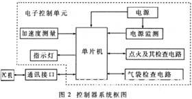 电子控制单元是整个控制系统的重要硬件,负责系统的管理、电源、加速度测量、气袋点火驱动、指示灯显示、数据采集等功能。