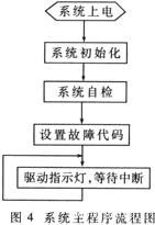 系统主程序包括系统初始化、系统自检、故障代码设置、指示灯驱动等程序。流程如图4所示。