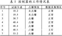 试验由台车撞击液压缓冲器模拟汽车的碰撞波形,在清华大学汽车碰撞试验室的试验台车上进行。为了节约,先由点火管代替气袋观察控制系统的工作情况,试验车速由10km/h递增至48km/h,车速低于20km/h时不应点火,高于30km/h时应该点火1。表1为试验时控制器的工作情况。