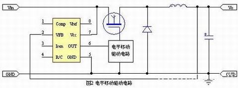 当主电路的供电电压不太高时,可插入图二所示的电平转换驱动电路。这种方法的优点是成本较低,缺点一是当输入电压Vin较高时不易处理好;二是电平移动驱动部分需要电荷泵供电,因此电路比较繁复。