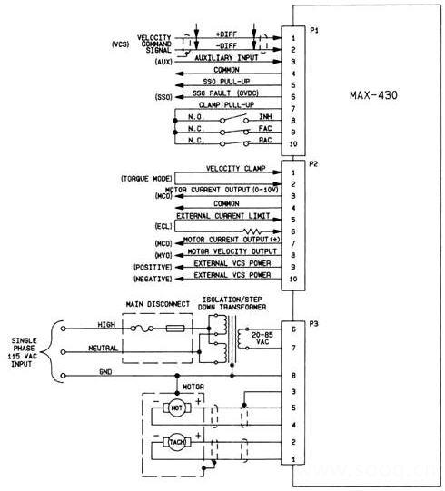 该命令的信号被送到控制器通过港口有价证券投资。该终端的指挥信号的1和2 。 1号候机楼是+和终端2 -.这种信号是一种信号,这意味着它不是停飞或不同意的理由可能同任何其他部分的电路。一些额外的辅助信号也通过端口连接1 。这些信号包括抑制(异烟肼) ,这是用来停用驾驶从外部控制器,并正向和反向的命令(刚果和吸波涂层) ,其中向控制器发出电压电机,使之将在旋转向前或扭转方向化。在某些应用中,最大的旅行着限位开关和反向最大的旅行限位开关连接,如果旅行的机器动作的极端位置,以便它触及了overtravel限位开关,它会自动激发干劲,开始旅行相反的方向发展。