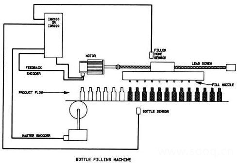 伺服驱动系统比较的立场瓶从主编码器的反馈信号,表明的立场,填补运输安装的滚珠丝杆。伺服驱动器放大器将增加或减少的速度滚珠丝杠机制,使喷嘴将匹配的速度瓶到底。
