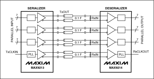 使用电容去耦时,需保证发送数据不要沿着一个方向长时间地为电容充电,例如,在发送一长串“1”时即可出现这种情况。第二代器件,例如:MAX9247或MAX9248采用“直流均衡”技术解决了上述问题。当检测到发送数据中存在一长串1或0时,将对部分数据进行反相后发送。当数据到达接收器时,对这部分数据再次反相,恢复到原来的格式。利用这种方式可以避免对电容的过度充电,发送器会通知接收器每一批数据是按照正常格式还是反相格式发送的。